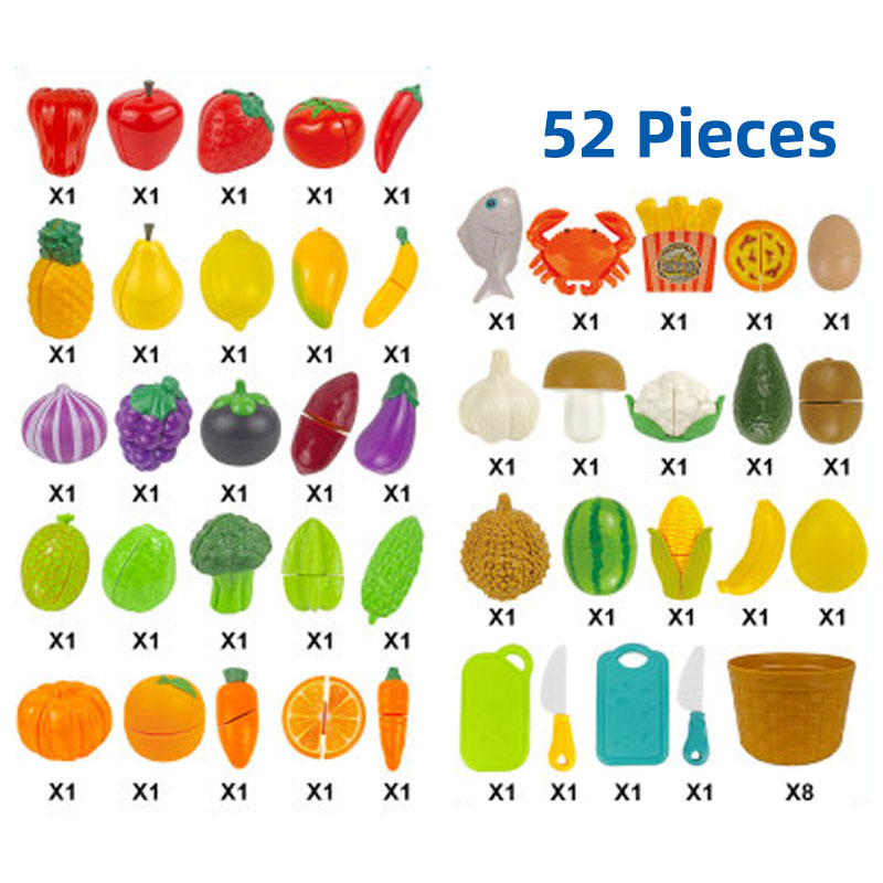 52pcs Kitchen Pretend Play Fruits Vegetables Seafood Color Shape Cognition Sorting Set Kids Educational Food Cutting Toy Set