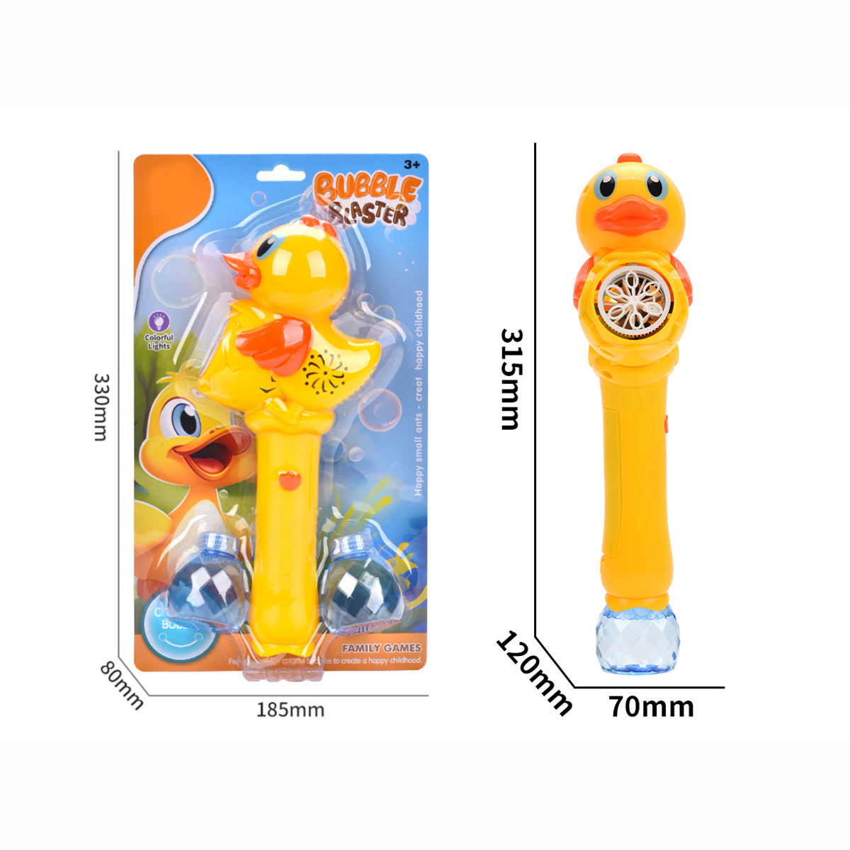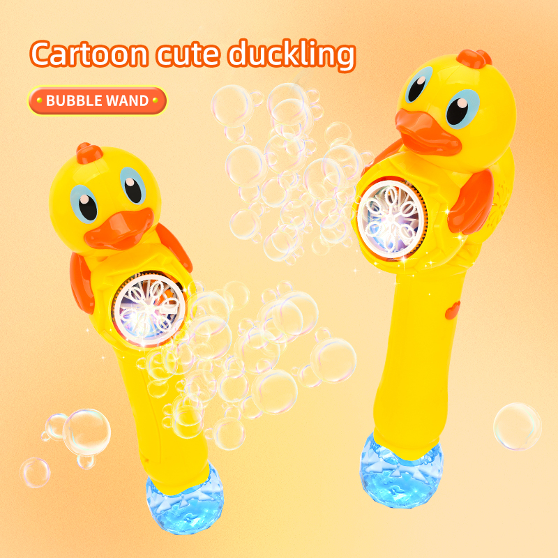Cute Cartoon Duck Bubble Stick Toys with Light & 2 Bubble Solution Bottles